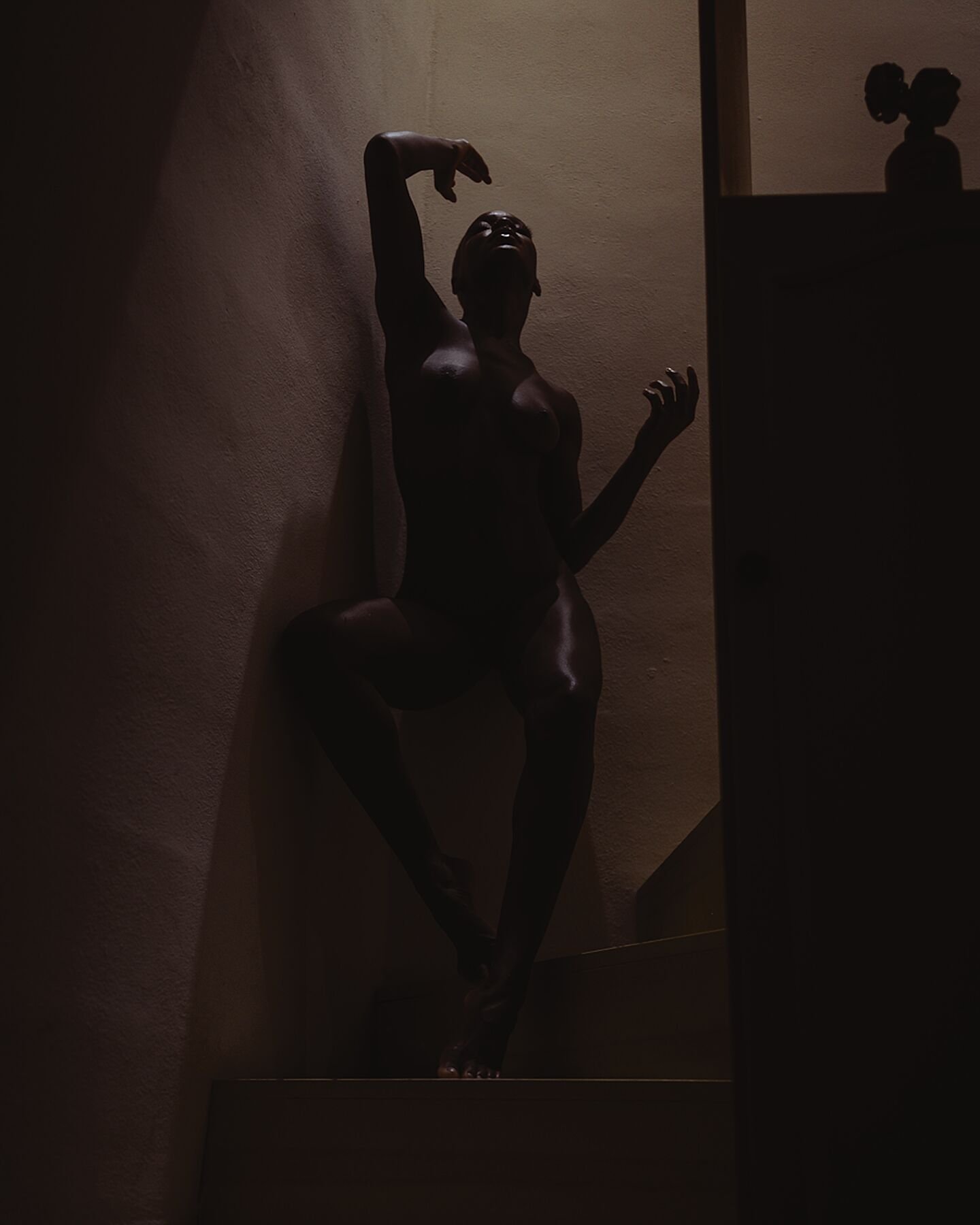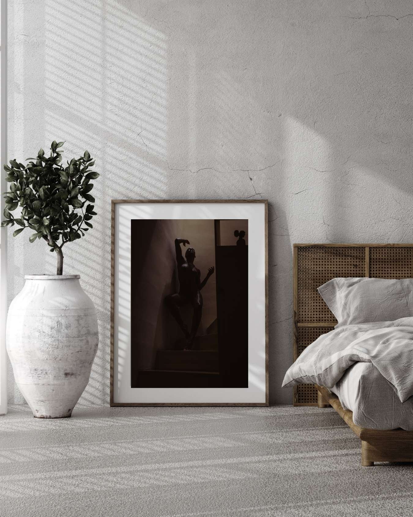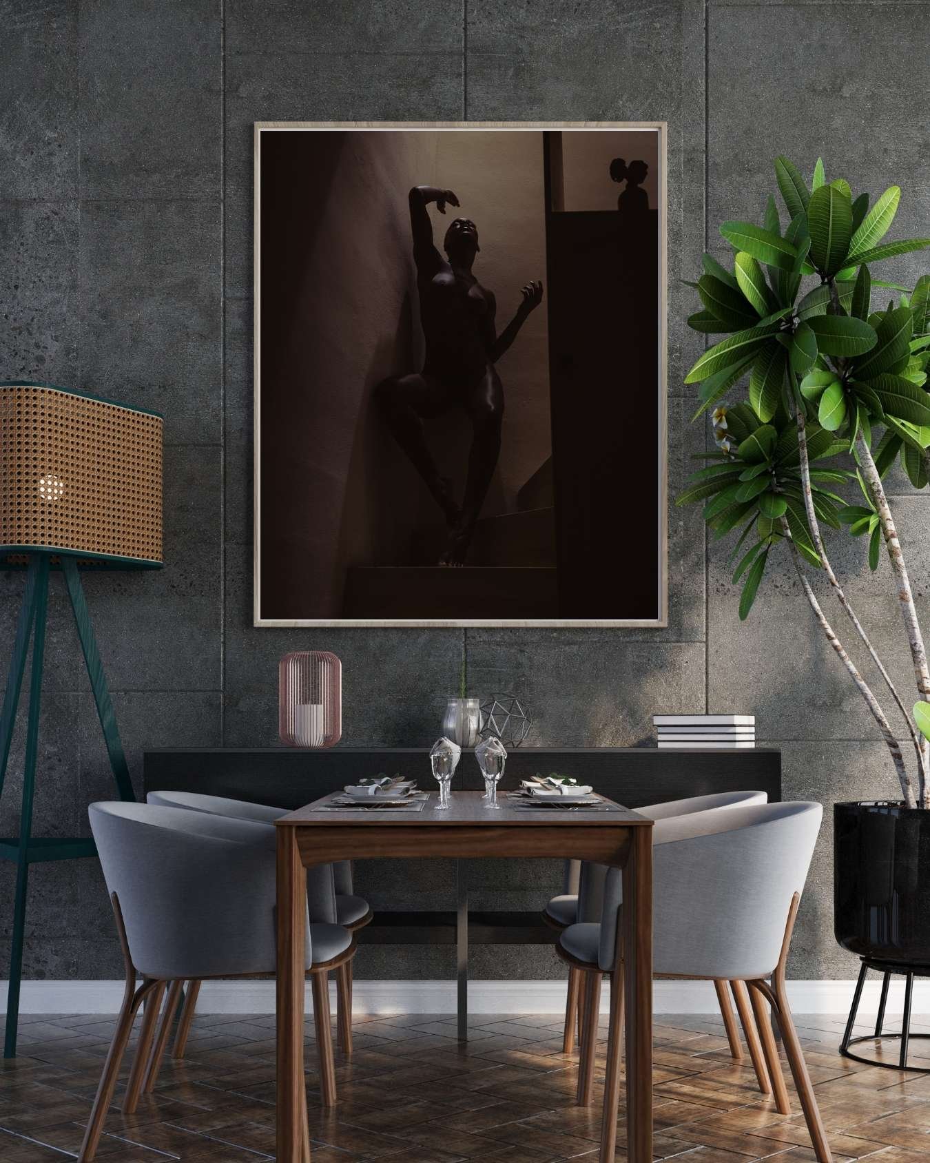 Step into the mesmerizing interplay of light and form with “PivotPixie in Playa Del Carmen,” a fine art print that masterfully captures the elegance of shadow play. Set in a minimalist staircase and bathed in warm, dramatic lighting, PivotPixie’s silhouette evokes mystery, strength, and grace.
